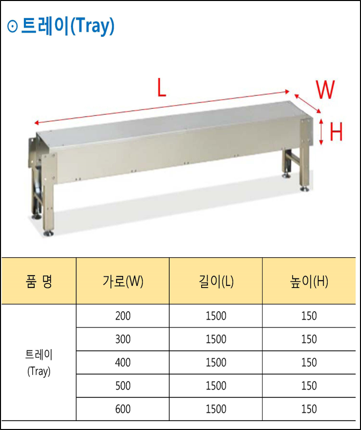 트레이[Tray] 트레이 페이지 정보 작성자 대일강업(주) 조회337회 작성일 22-09-19 05:48 제품명 : 트레이 가로(W) 200/300/400/500/600 길이(L) 1500 높이(H) 150 기타내용 트레이