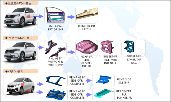 현대/기아 차체 부품[HKMC] 쏘렌토(MQ4), K3(BD)차체부품(HKMC) 페이지 정보 작성자 대일강업(주) 조회167회 작성일 22-09-19 05:55 제품명 : 쏘렌토(MQ4), K3(BD)차체부품(HKMC) 기타내용 쏘렌토(MQ4), K3(BD)차체부품(HKMC)